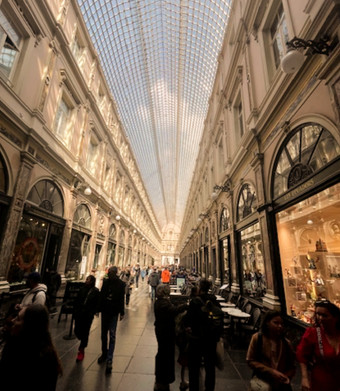 At one time in the nineteenth century, the city had over 50 covered shopping arcades (did the weather play a part in their development?), now there are about eight. So we set out to explore some of them. First stop was Matonge in the lively African quarter where the arcade is devoted to the art of the hair both female braids, extensions and wigs and male barbering. It was Saturday morning and this coiffeuring was a major social event with large numbers of people squeezed into tiny salons, wouldn't be surprised if there were picnics. The Gallerie du Centre was quieter and appeared to be purely for Nail Bars run by Asian staff. The famous, glass domed Galeries St Hubert was heaving with tourists searching for the best chocolates (how to choose?), handbag, antique or waffle. Our favourite was the Gallerie Borthier and its Cafe Litteraire where you can get coffee and cake, fish and chips, shrimp croquettes (thanks Mike for the recommendation), beer, books and antiques. Furthermore it is calm and peaceful with a background hum of conversation in many languages.